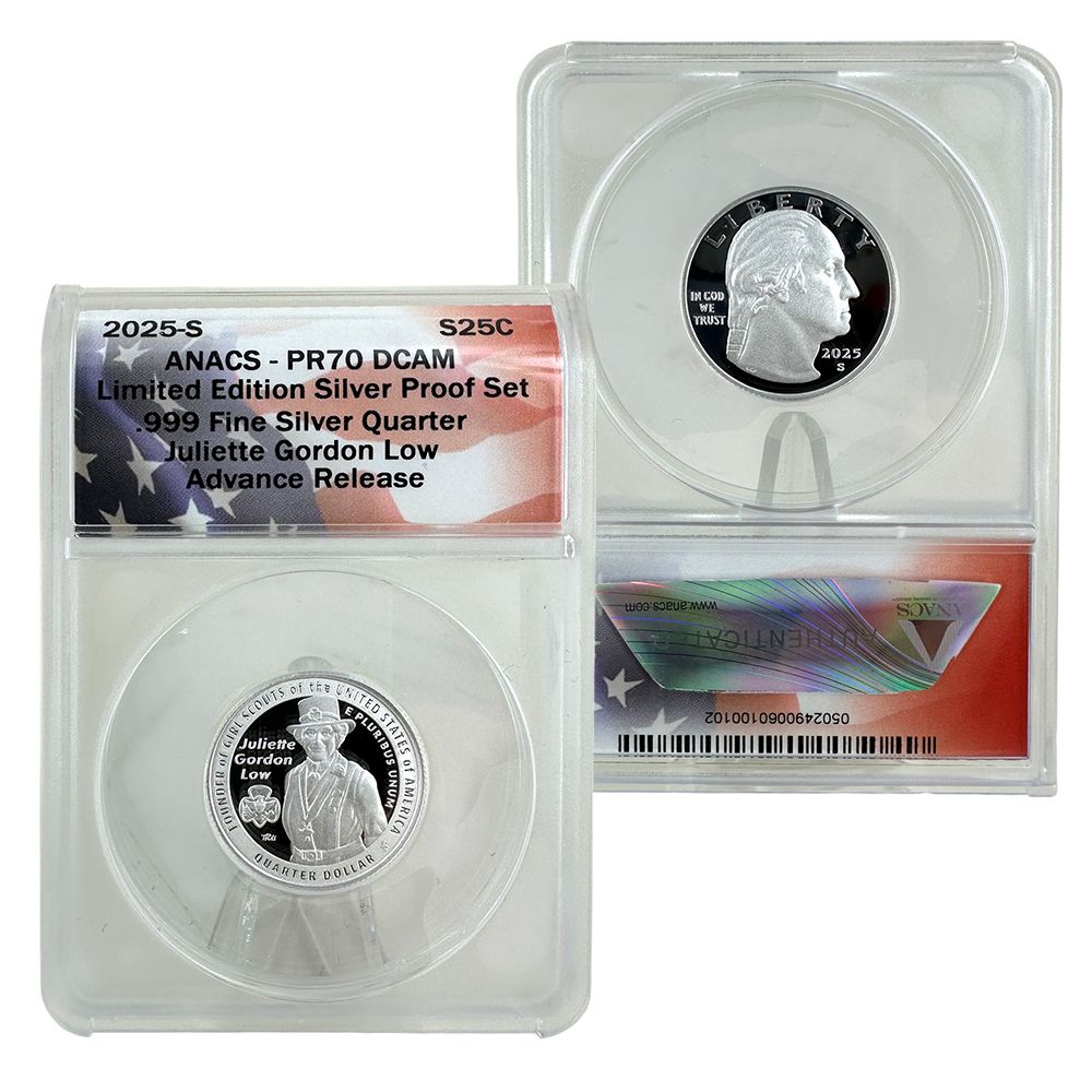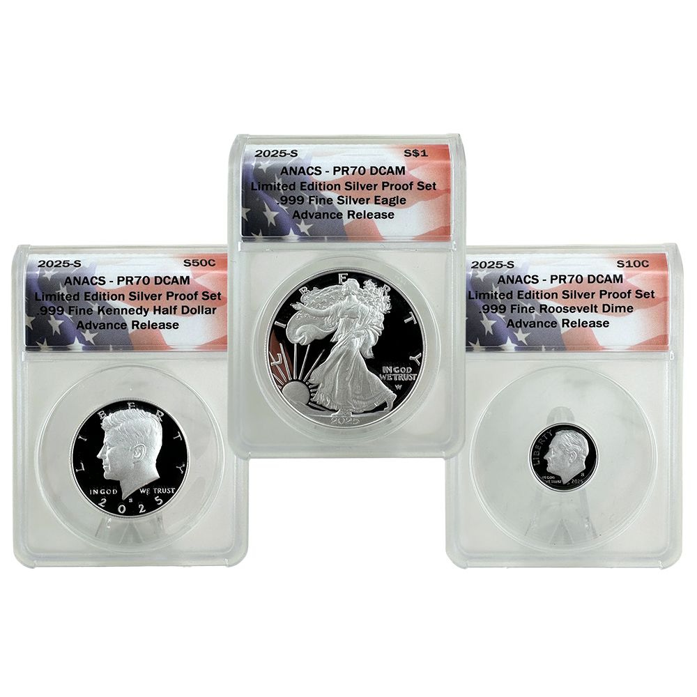 Each coin bears the “S” mintmark and showcases extraordinary proof craftsmanship — deep mirrored fields contrasting against sharp, frosted reliefs that highlight every line, curve, and engraving in pristine clarity. What makes this set even more significant is its timing. The 2025 Silver Proof Set will be the final U.S. Mint set to feature these classic designs before the Mint introduces completely new artwork across multiple denominations in 2026 to honor the nation’s 250-year legacy. Collectors and historians alike expect this moment to mirror the seismic design shifts of 1916, 1932, and 1986 — turning this 2025 edition into a must-own time capsule of the Mint’s modern era. Encased in NGC’s secure holders with the official Advanced Release designation, each coin is preserved in museum-grade condition, ready to display or treasure for generations. Key Features