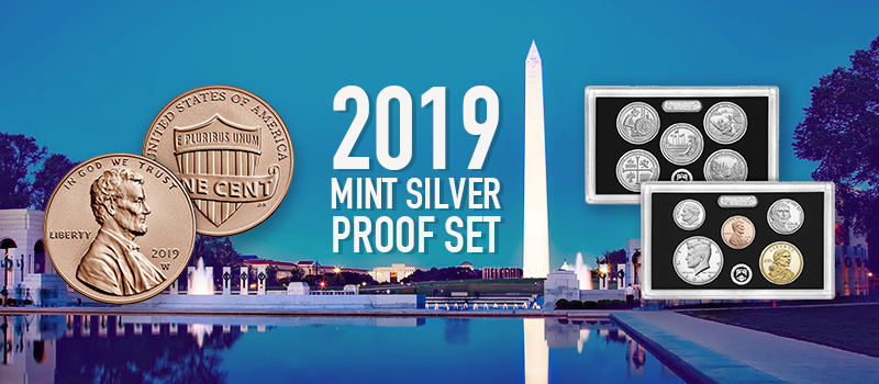 The 2019 Silver Proof set contains a Premium coin, the Lincoln Penny with Reverse Proof finish. The West Point Mint’s reverse proof cent is like a standard proof coin, but its appearance is opposite, featuring mirror-like designs against frosted backgrounds. This premium cent comes in a separate package in clear United States Mint plastic wrap.